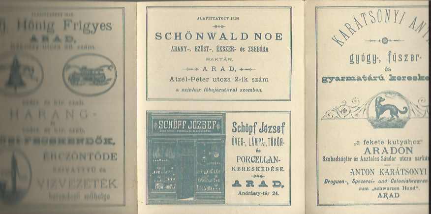 Arad város képekben és reklámokban, az 1880-90- es évekből, 14 lapos leporelló (ritka)