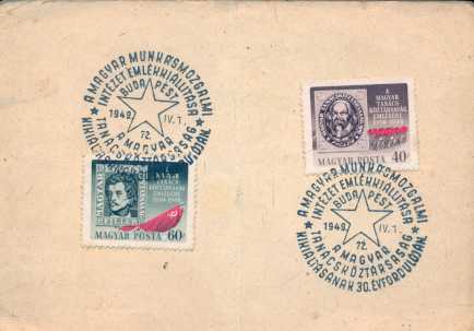 Emlékbélyegzés 1949 IV. 1. A Magyar Munkásmozgalmi Intézet emlékkiállítása: A Magyar Tanácsköztársaság kikiáltásának 30. évfordulóján