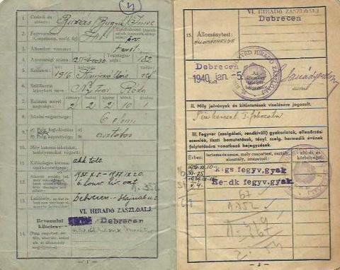 II. világháborús magyar Igazolványi lap.