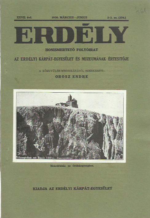 Erdély. Honismertető folyóirat 1930. teljes év. 1-6. szám, 4 füzetben.
