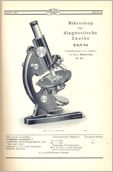 Árumintakatalógus: Zeiss Mikroskope und Nebenapparate (Jena 1927)