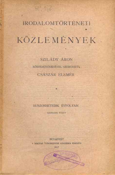 Irodalomtörténeti közlemények (huszonhetedik évfolyam) 3. füzet