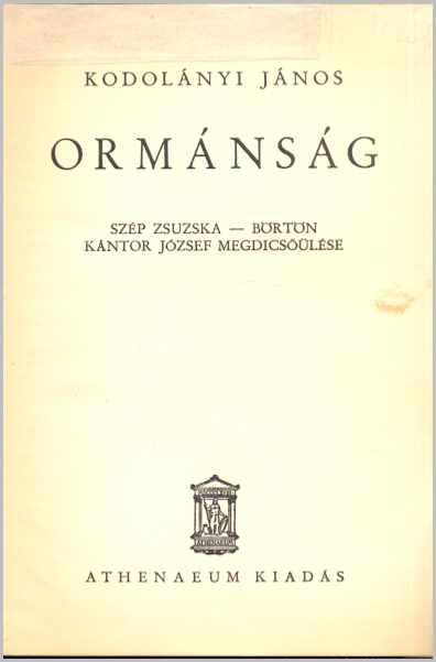 Kodolányi János: Ormánság (Szép Zsuzska - Börtön - Kántor József megdicsőülése)