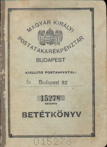 Magyar Királyi Postatakarékpénztár betétkönyv 1937