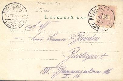Levelező- lap kiadásban. Postázott lap. Petrozsényből postázva Budapestre.