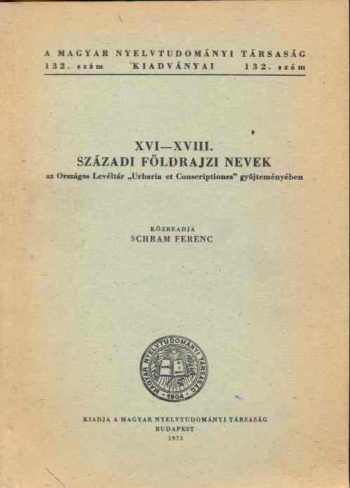 Schram Ferenc: XVI-XVIII. századi földrajzi nevek az Országos Levéltár "Urbaria Conscriptiones"-ben