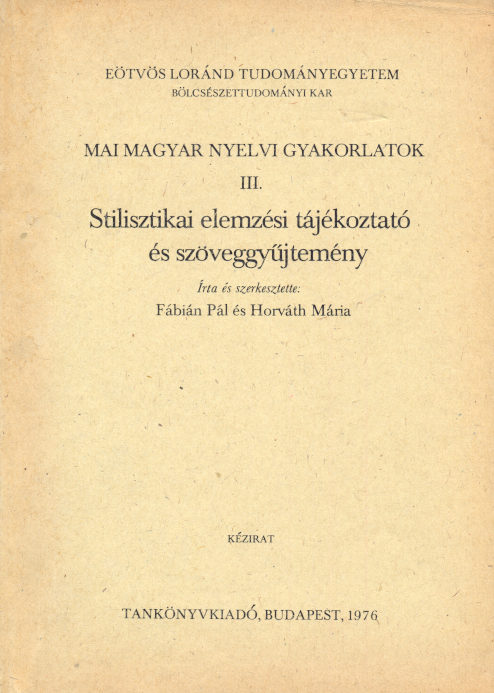 Stilisztikai elemzési tájékoztató és szöveggyűjtemény (egyetemi jegyzet)