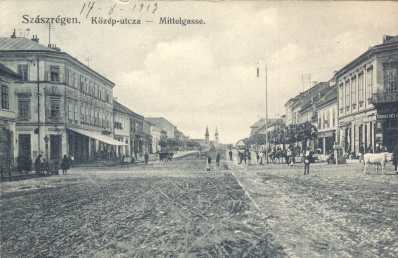 Szászrégen. Közép-utcza --Mittelgasse korabeli képeslap