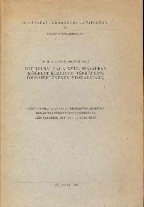 Tóth Andrásné Polonyi Nóra: Egy tolnai táj a 18. században. Kísérlet kéziratos térképeink forrásértékének vizsgálatára