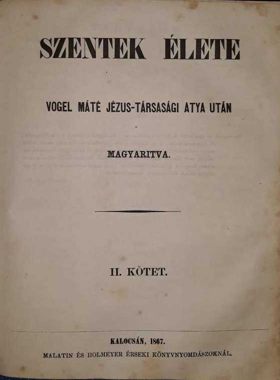 Szentek élete. Vogel Máté Jézus-társasági atya után magyarítva. 1-3. köt. (egybekötve).