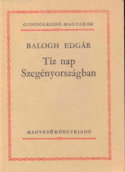 Balogh Edgár: Tíz nap Szegényországban (Kárpátalja 3 magyar faluja) -1931, Csehszlovákia-