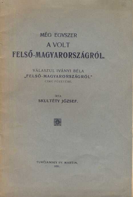 Skultéty József: Még egyszer a volt Felső-Magyarországról. Válaszul Iványi Béla "Felső-Magyarországról" című füzetére