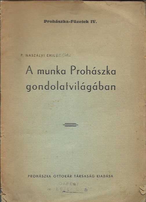 Naszályi Emil P. : A munka Prohászka gondolatvilágában (klny, Új Élet 1940 ápr.)