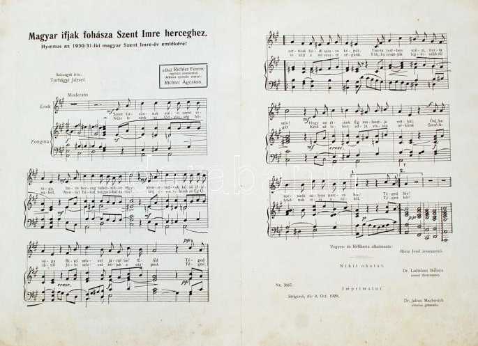 nyomtatvány - Magyar ifjak fohásza Szent Imre herceghez. Hymnus az 1930-31-iki magyar Szent Imre év emlékére