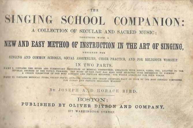 Joseph and Horace Bird: The Singing School Companion: a collection of secular and sacred music