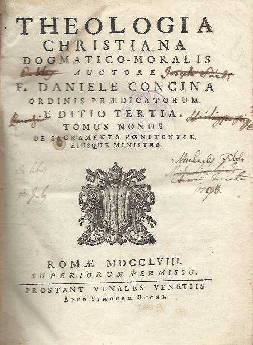Daniele Concina: Theologia christiana dogmatico-moralis. Tomus nonus, De sacramento Poenitentiae eiusque ministro./ Tomus decimus, De sacramentis, extremae unctionis..