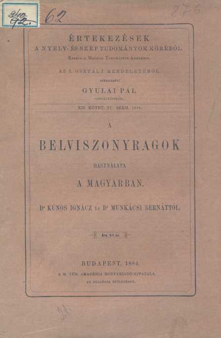 Kúnos Ignácz, Munkácsi Bernát: A belviszonyragok használata a magyarban