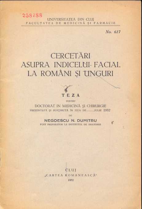 Erdélyi magyarok és románok az embertan tükrében: Cercetări asupra indicelui facial la români şi unguri