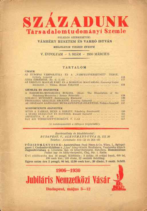 Századunk //Társadalomtudományi szemle V. évfolyam 3. szám
