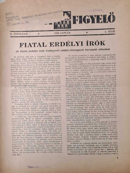 Erdélyi figyelő. II. évf. 1938. 1. szám