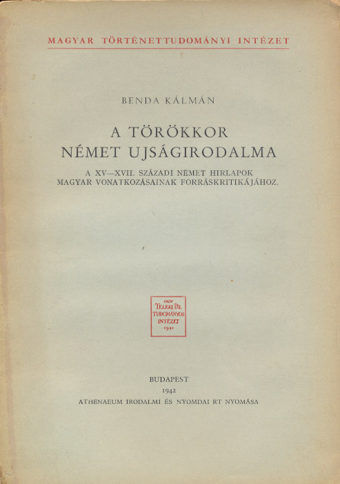 Benda Kálmán: A törökkor német újságirodalma. A XV–XVII. századi német hírlapok magyar vonatkozásainak forráskritikájához