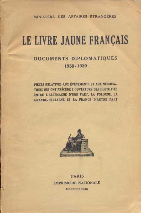 Le livre jaune français. Documents diplomatiques 1938-1939. (Francia diplomáciai iratok 1938-1939)