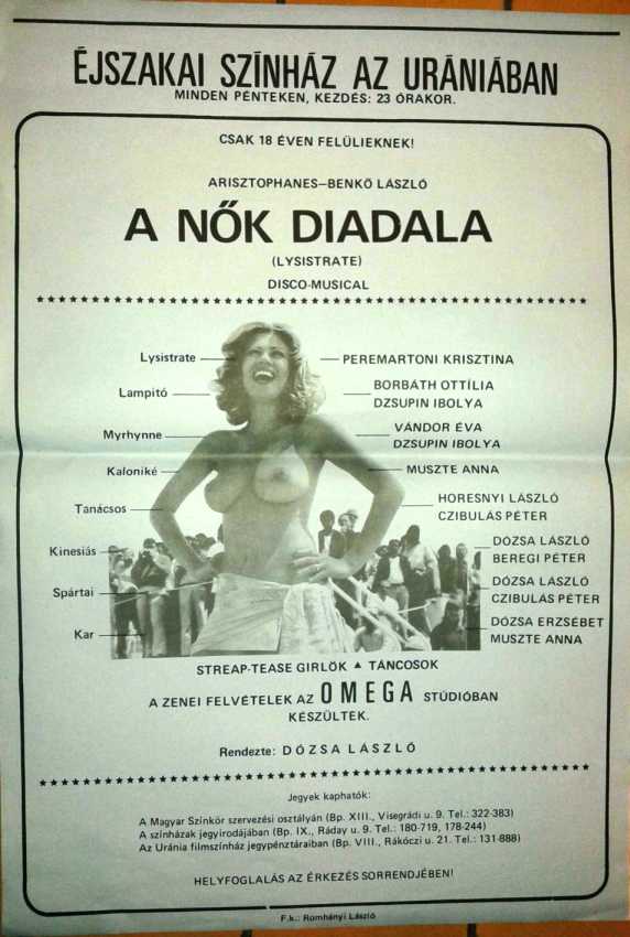 Benkő László (zene): A nők diadala c. disco-musical plakátja 1985-ből. Méret: 29 x 41 cm