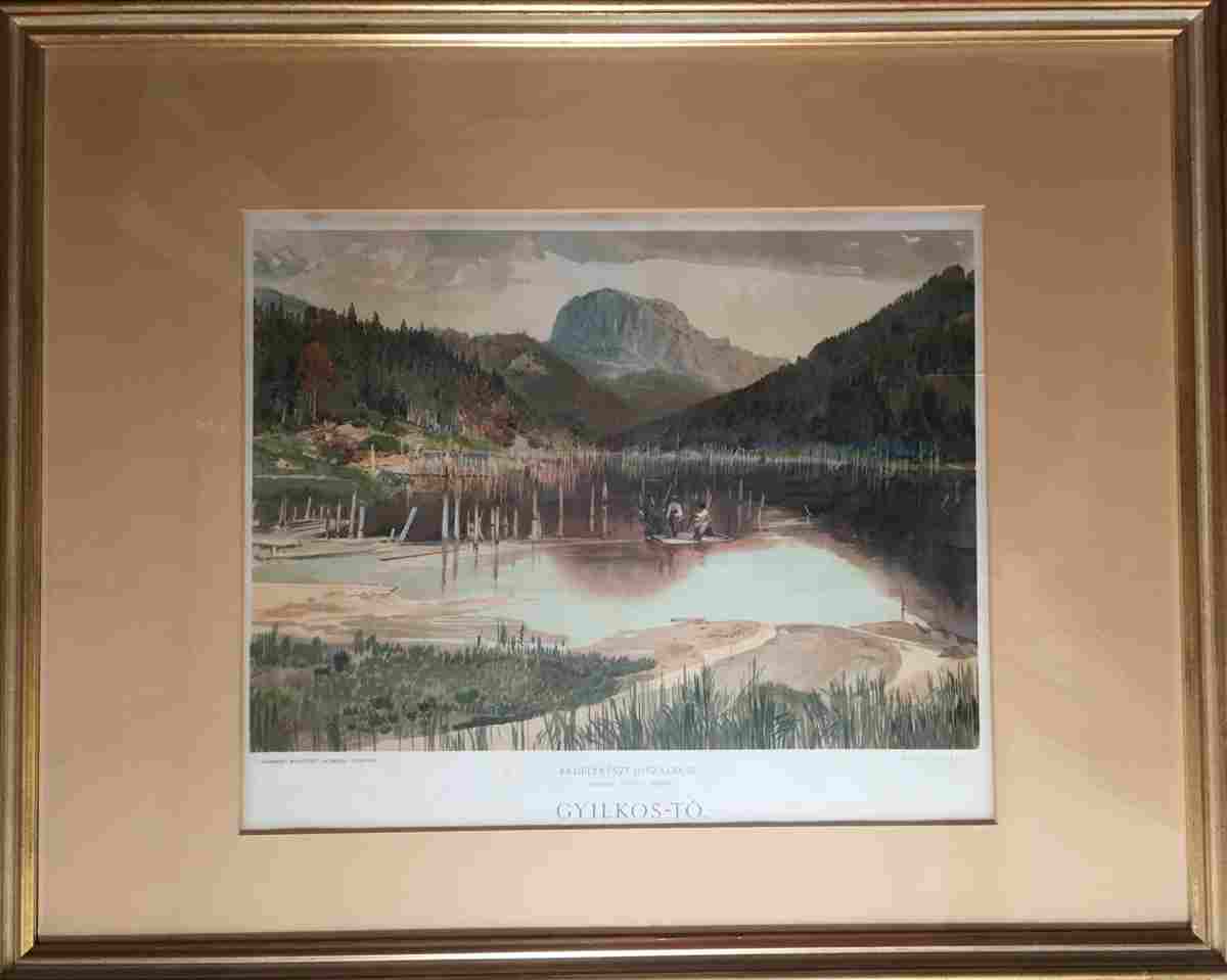 A Gyilkos-tó Erdélyben 1896-ban, Goró Lajos akvarellje, színes nyomaton