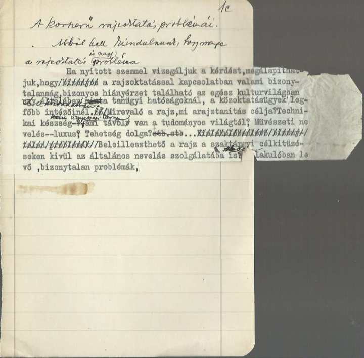 Nagy Nándor grafikusművész "A korszerű rajzoktatás problémái" c. cikksorozatának kézirata. Kb. 45-50 oldal