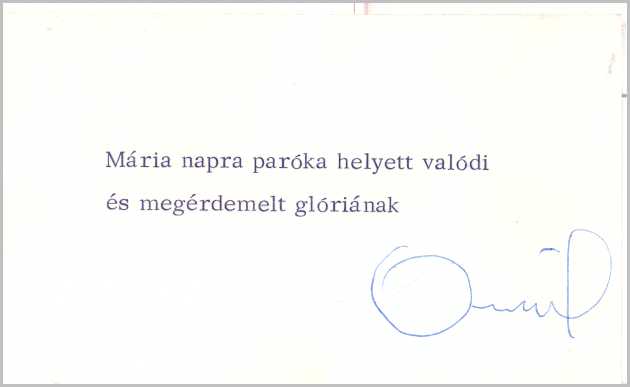 Aczél György aláírt névjegykártyája (kézirat)
