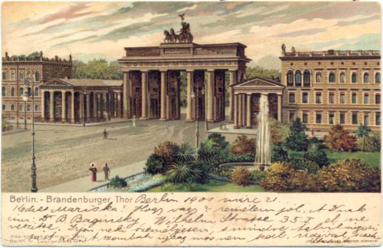 képeslap - Berlin. Brandenburger Thor - Waarenhaus Hermann Tietz in der Leipzigerstrasse
