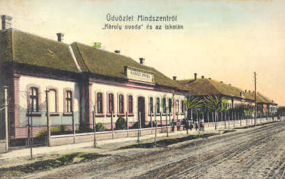 Üdvözlet Mindszentről, -Károly óvoda- és az iskolák régi képeslapon