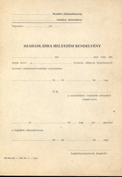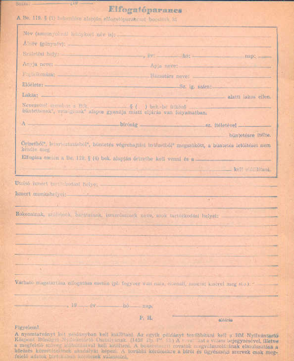 Régi, kitöltetlen rendőrségi bűnügyi nyomtatványok: Elfogatóparancs, Körözőlevél eltűnt személyről