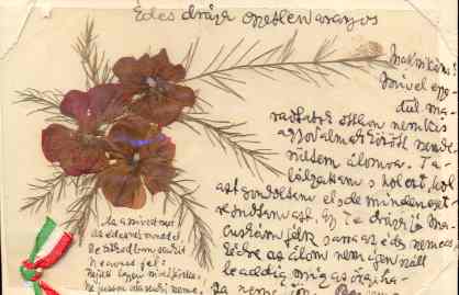 Képeslap: egyedi készítésű képeslap, nemzeti színű szalaggal