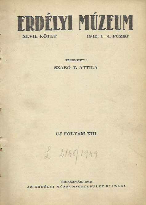 Erdélyi Múzeum 1942. 1-4. száma (bekötve)