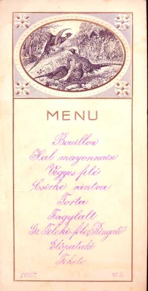 Régi menükártya Kolozsvárról (kb. 10 x20 cm)