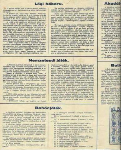 Ezeken kívül még van néhány játékszabály leírás, de ezekhez nem tartozik rajzos lap (tábla). A táblák nincsenek kartonra ragasztva.