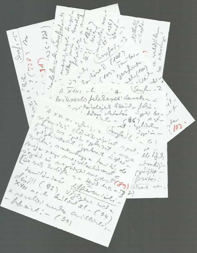 A könyvbe helyezve Vekerdi László jegyzetei kis cetliken a könyvvel kapcsolatban. A könyvben ceruzás kiemelések.