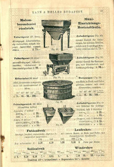 Ipari és műszaki szükségleti cikkek: malmászati, mezőgazdasági, tejgazdasági, villamosvilágítási, erőátviteli, vízvezetéki és takarmánykamra berendezésekhez szükségelt gépek, gépalkatrészetek és anyagok. Szerszámok, szerszámgépek, szivattyúk benzin-, gáz-, szívógáz- és gőzmotorokról.