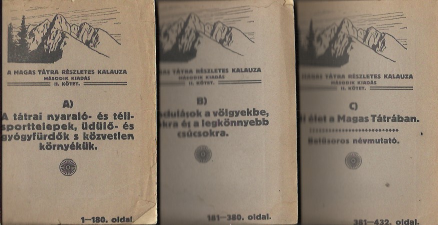 (A)A tátrai nyaraló- és téli-sporttelepek, üdülő- és gyógyfürdők s közvetlen környékük* //(B) Kirándulások a völgyekbe, hágókra és a legkönnyebb csúcsokra* // (C) Téli élet a Magas Tátrában. Betűsorsos névmutató* [3 kötetben]