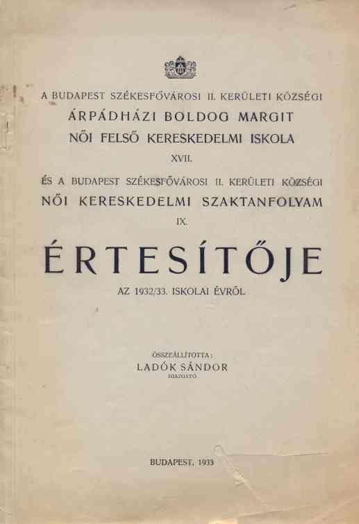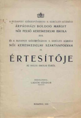A Budapest II. ker községi Árpádházi Boldog Margit Női Felső Kereskedelmi Iskola értesítője az 1932/33. és az 1934/35. iskolai évről
