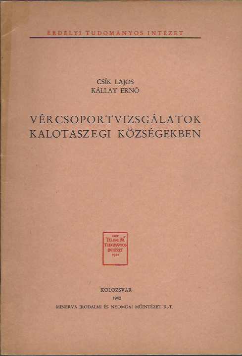 Csík Lajos, Kállay Ernő: Vércsoportvizsgálatok kalotaszegi községekben
