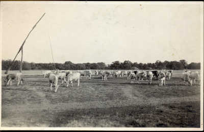 fotó-képeslap: Szürke marhák a Hortobágyon. 1945 előtt.