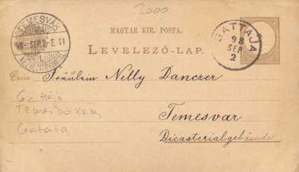 1898-as postabélyegzéssel. Ma város Romániában. (Gătaia, Gattaia)