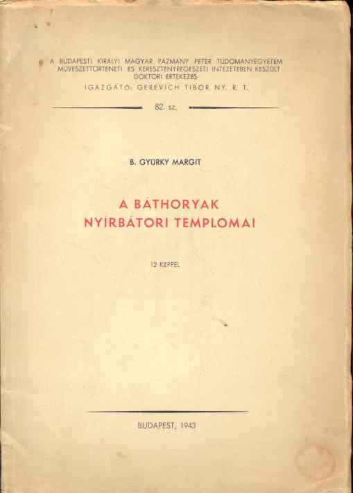 Gyürky Margit: A Báthoryak nyírbátori templomai 12 képpel (doktori értekezés)