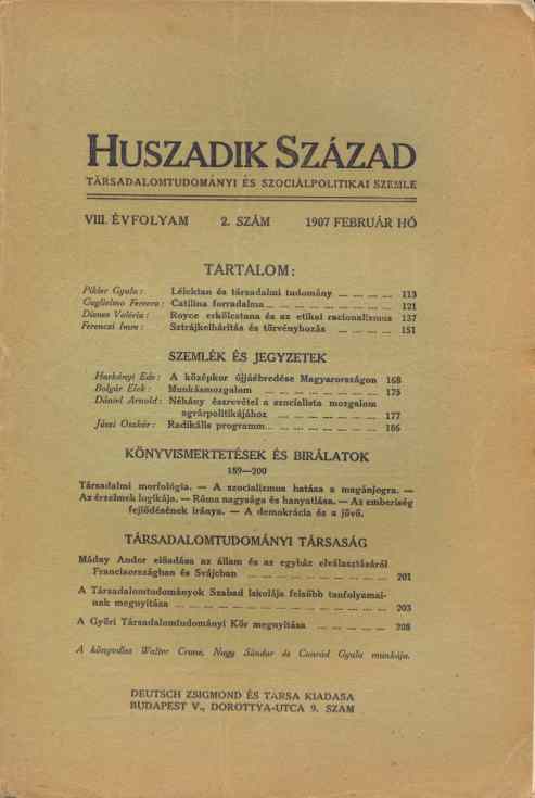 Huszadik Század. Társadalomtudományi és szociálpolitikai szemle