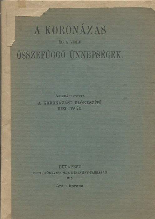 A Koronázás és vele összefüggő ünnepségek. Összeáll.: A Koronázást előkészítő bizottság