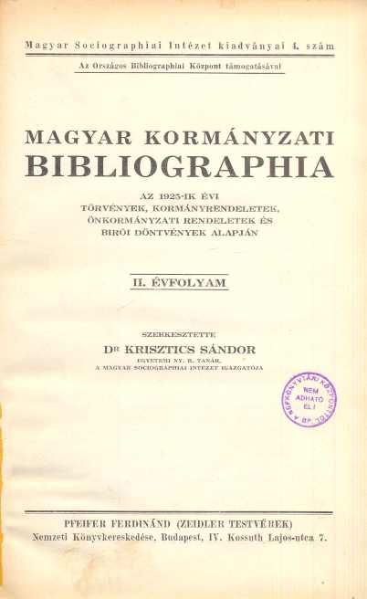 Krisztics Sándor: Magyar kormányzati bibliográphia 1925 évre