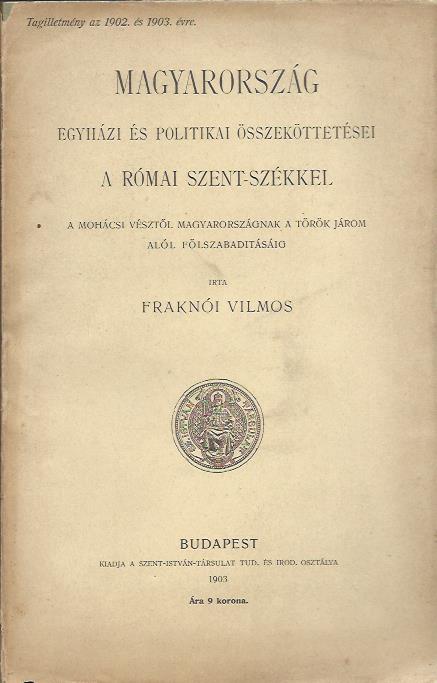 A tartalomból: Hunyadi János viszonya a szent-székhez. - Hunyadi követe Rómában Carvajal bibornok küldetése Magyarországba A szent-szék igyekezetei Mátyás és Frigyes kibékítésére II. Pál pápa megválasztatása. - Janus Pannonius küldetése Rómába. Mátyás a szent-szék fölhívására háborút indít Podjebrád cseh király ellen Mátyás király tárgyalásai a szent-székkel a főpapi székek betöltése ügyében Bakócz Tamás pápa-jelölt. - X. Leo megválasztatása. - Bakócz legátus latere. - A kereszteshadjárat kihirdetése. - A paraszt-lázadás. - Werbőczi hármaskönyve. (1513-1516.) János király kiközösíttetése. - János király magatartása. - Brodarics püspök küldetése a pápához. V. Pál pápa.- Bocskay fölkelése. - Pápai ezred fölállítása. - A békealkudozások. - Forgách Ferencz. - A nagyszombati zsinat. (1605-1615.) stb
