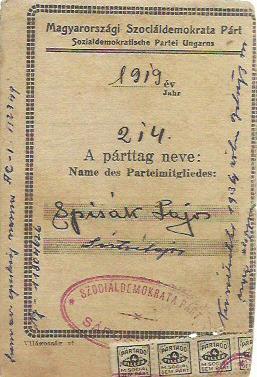 Magyarországi Szociáldemokrata Párt tagsági igazolvány 1919